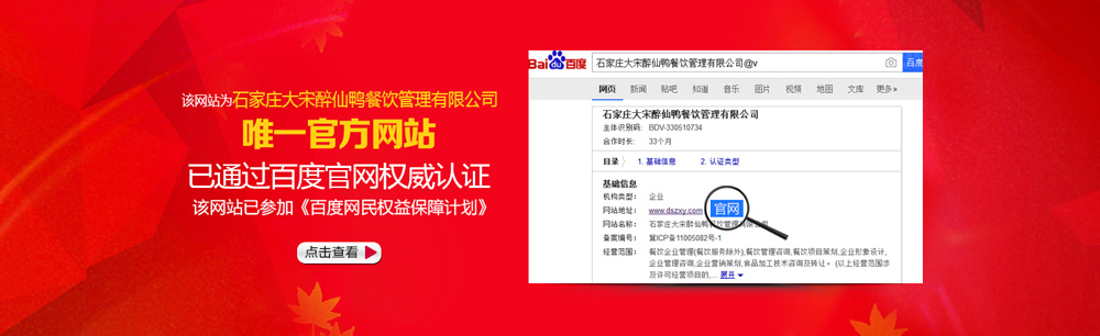 Copyright © 石家莊大宋醉仙鴨餐飲管理有限公司 All Rights Reserved.  技術支持:河北供求網 河北名企網榮譽企業-河北企業名錄已收錄